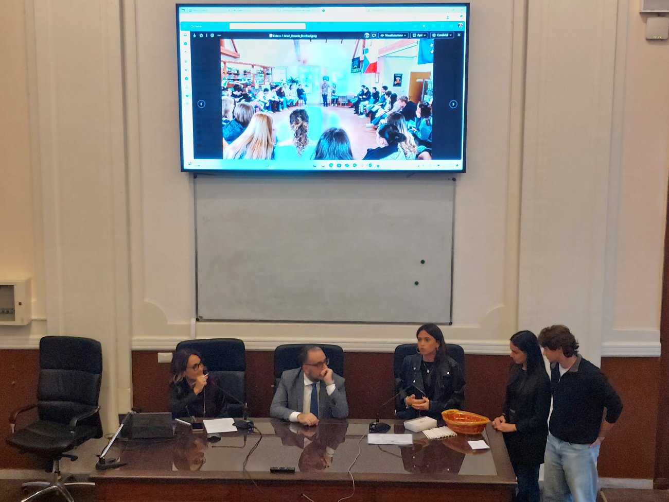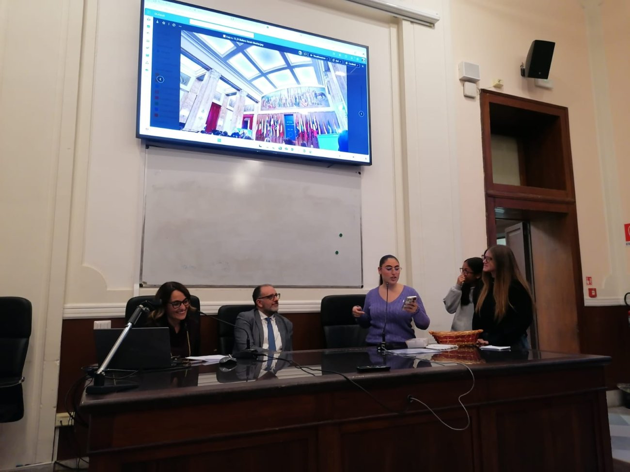 Dopo i saluti istituzionali, gli studenti hanno preso la parola a turno per illustare le  immagini e spiegare cosa l'Europa rappresenta per loro.